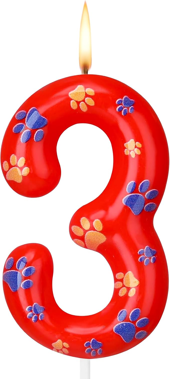 - 🐾 Adorable Paw-Themed Design – This Number 3 red paw birthday candle features a cute and playful dog paw print design, perfect for puppy, animal, or pet-themed birthday parties for boys and girls.